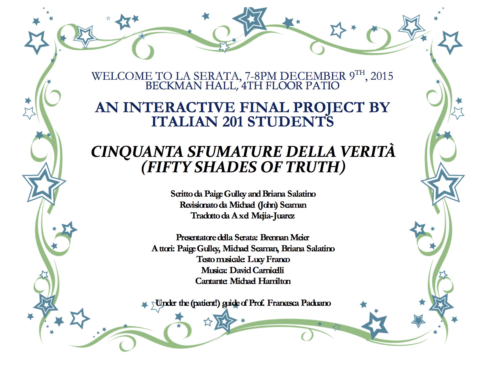 La Serata! Join us for a special treat by our great students!