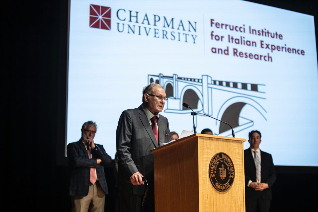 Chapman University is pleased to announce the creation of the Ferrucci Institute for Italian Experience and Research, thanks to a $1.5 million donation from the Ferrucci family. The gift was announced March 11 during the annual Italian Perspectives event at the Musco Center for the Arts. This is the second major gift announced in as many months.